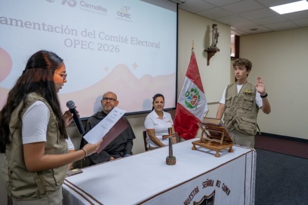Nuestros carmelitas de Secundaria participaron en la juramentación de la Oficina de Procesos Electorales Carmelitas…