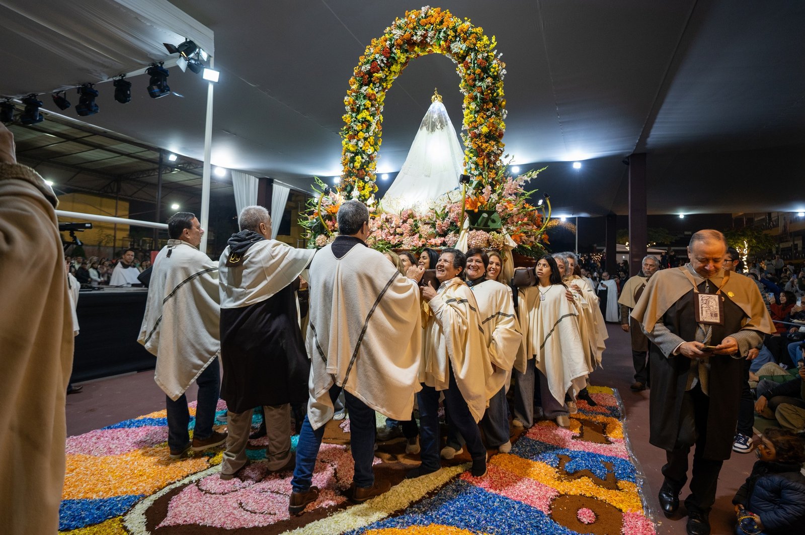 Al llegar al local de Secundaria, se realizó un especial homenaje a nuestra Madre mediante la presentación de una marinera, expresión cultural llena de elegancia y significado. Este momento fue acompañado por la banda del Ejército del Perú, cuya participación aportó solemnidad y realce a este gesto de fe y gratitud.