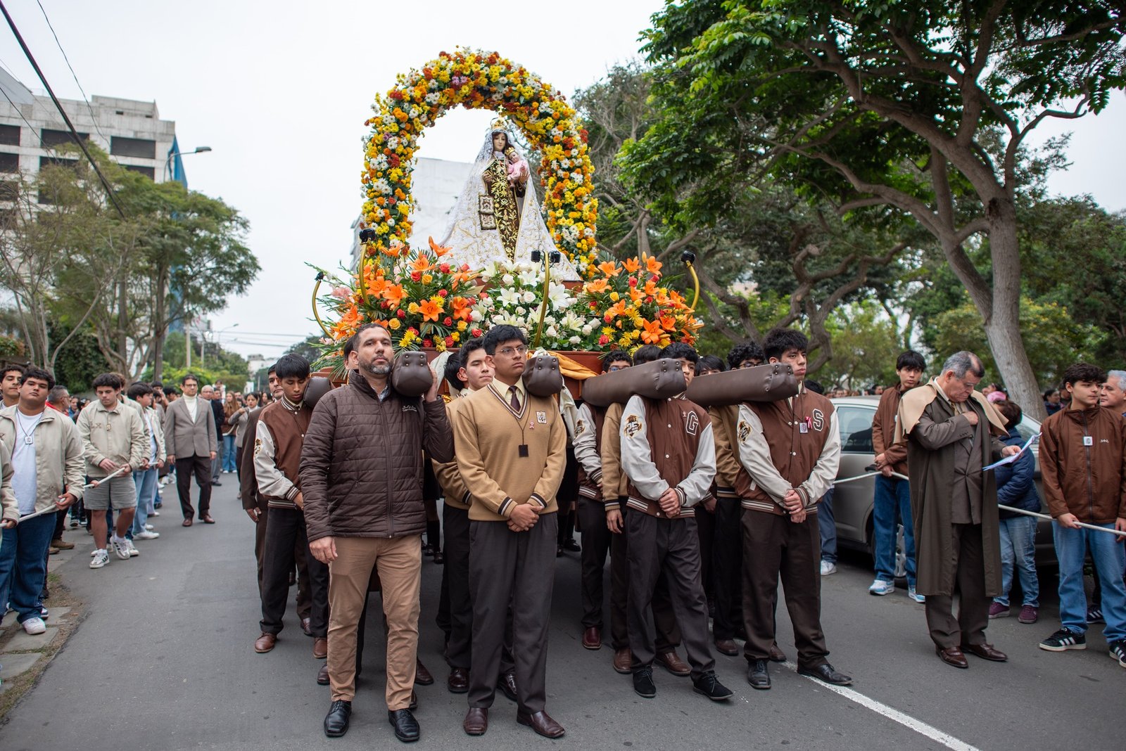 La celebración se inició con una emotiva misa en el coliseo de Primaria, donde la comunidad educativa se reunió en un momento de oración y reflexión. Durante la eucaristía, se elevaron intenciones por nuestras familias, por el bienestar de nuestros estudiantes y por la misión educativa que el colegio desarrolla con compromiso. Al culminar, se dio paso a la tradicional procesión por las calles de Miraflores, acompañando con profunda devoción la imagen de la Virgen del Carmen.