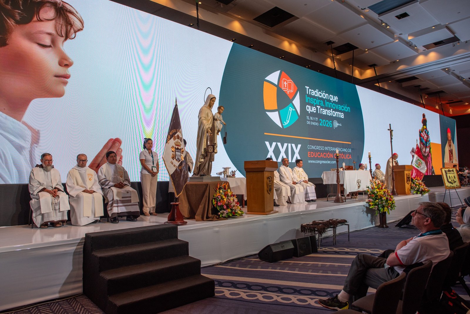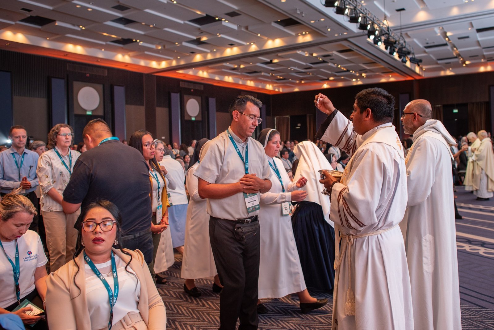 Las jornadas también estuvieron marcadas por momentos de profunda vivencia espiritual. Durante el congreso se celebró una Eucaristía solemne, presidida por autoridades eclesiales y concelebrada por sacerdotes y religiosos presentes en el encuentro. La celebración contó con la participación de un coro litúrgico que acompañó los cantos de la misa, mientras que los asistentes participaron activamente en la oración y en la recepción de la Eucaristía, reforzando el sentido de comunidad que caracteriza a la educación católica.