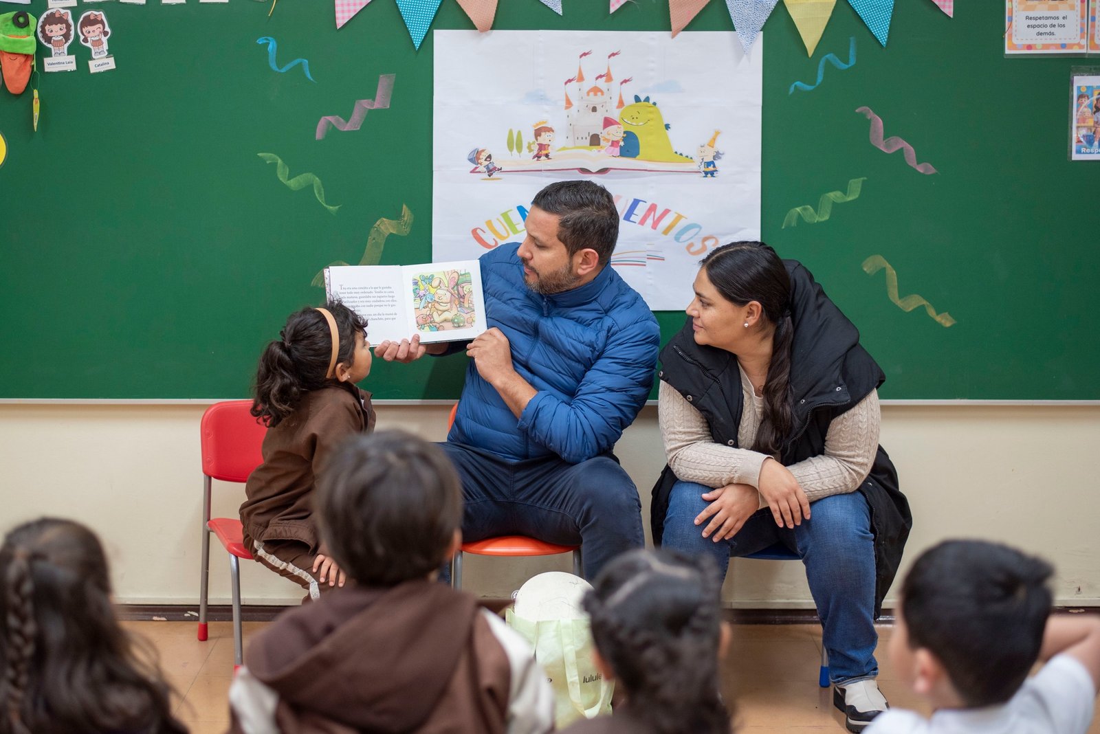 Uno a uno, los padres fueron pasando al frente para leer y narrar sus cuentos, dando vida a los personajes y transportando a los niños a mundos llenos de imaginación. Entre risas, gestos de asombro y miradas curiosas, los pequeños disfrutaron cada narración, compartiendo un momento lleno de alegría y creatividad.
