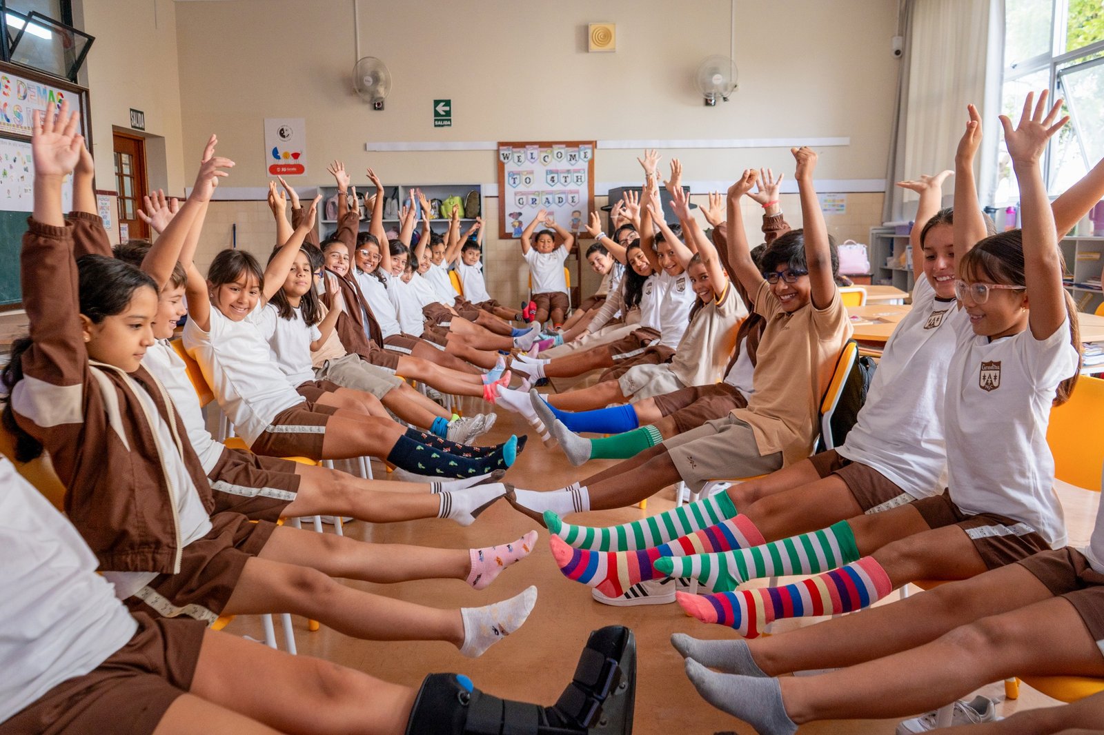 Como símbolo de este compromiso, la comunidad educativa asistió con medias de diferentes colores, un gesto que representa que todos somos únicos y que nuestras diferencias enriquecen la vida en comunidad.