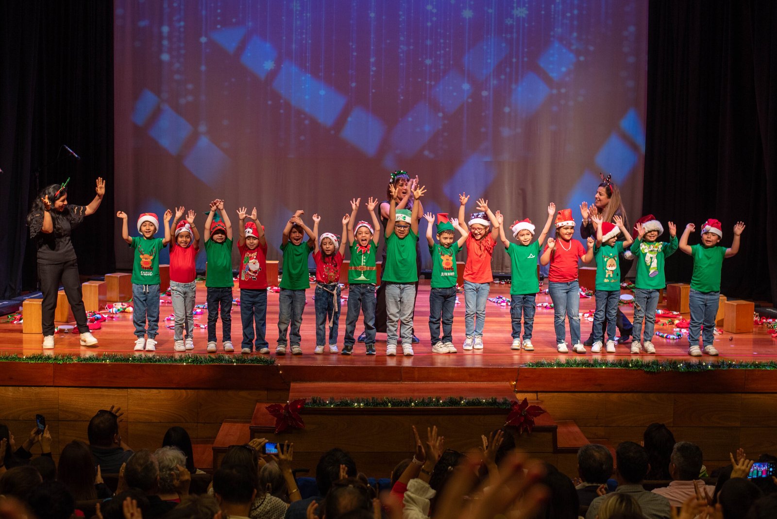 Por su parte, nuestros carmelitas de Kínder también participaron en su presentación de cierre navideño, interpretando con alegría y entusiasmo cantos representativos de esta significativa celebración.