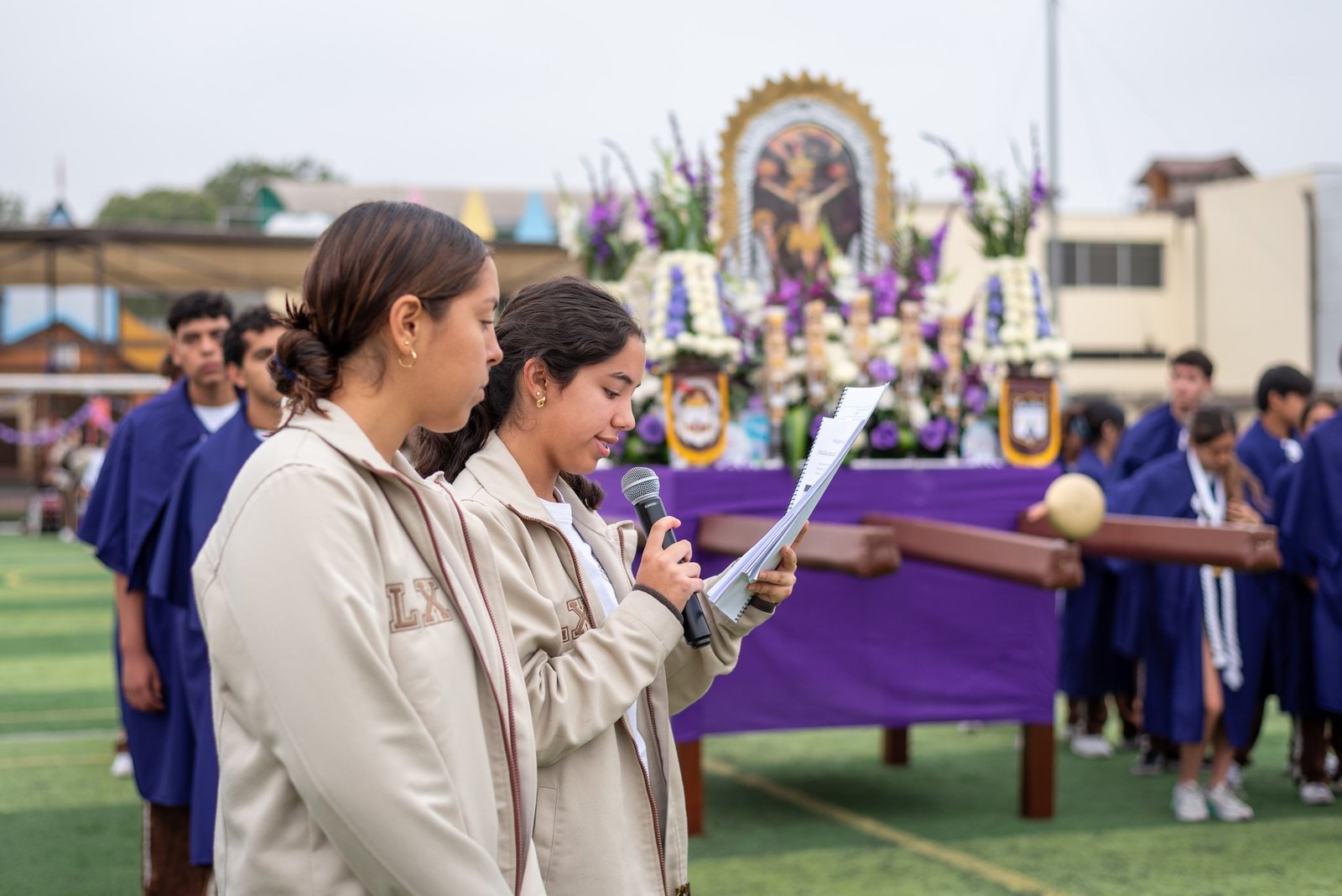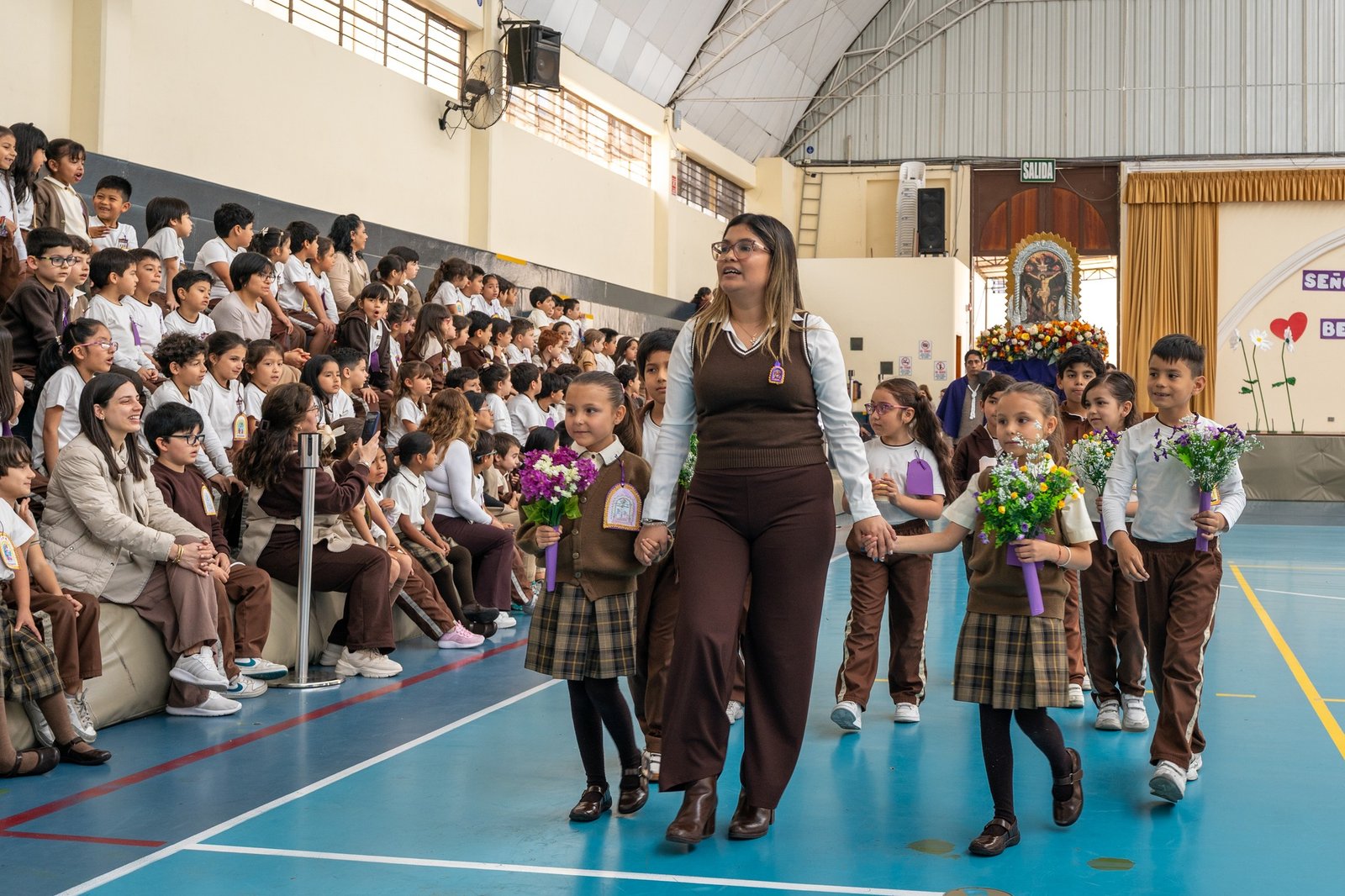 Nuestra comunidad educativa vivió una jornada de profunda fe y devoción durante la procesión del Señor de los Milagros, en la que participaron con recogimiento y entusiasmo nuestros estudiantes de Inicial, Primaria y Secundaria, junto a docentes, familias y colaboradores de la institución.